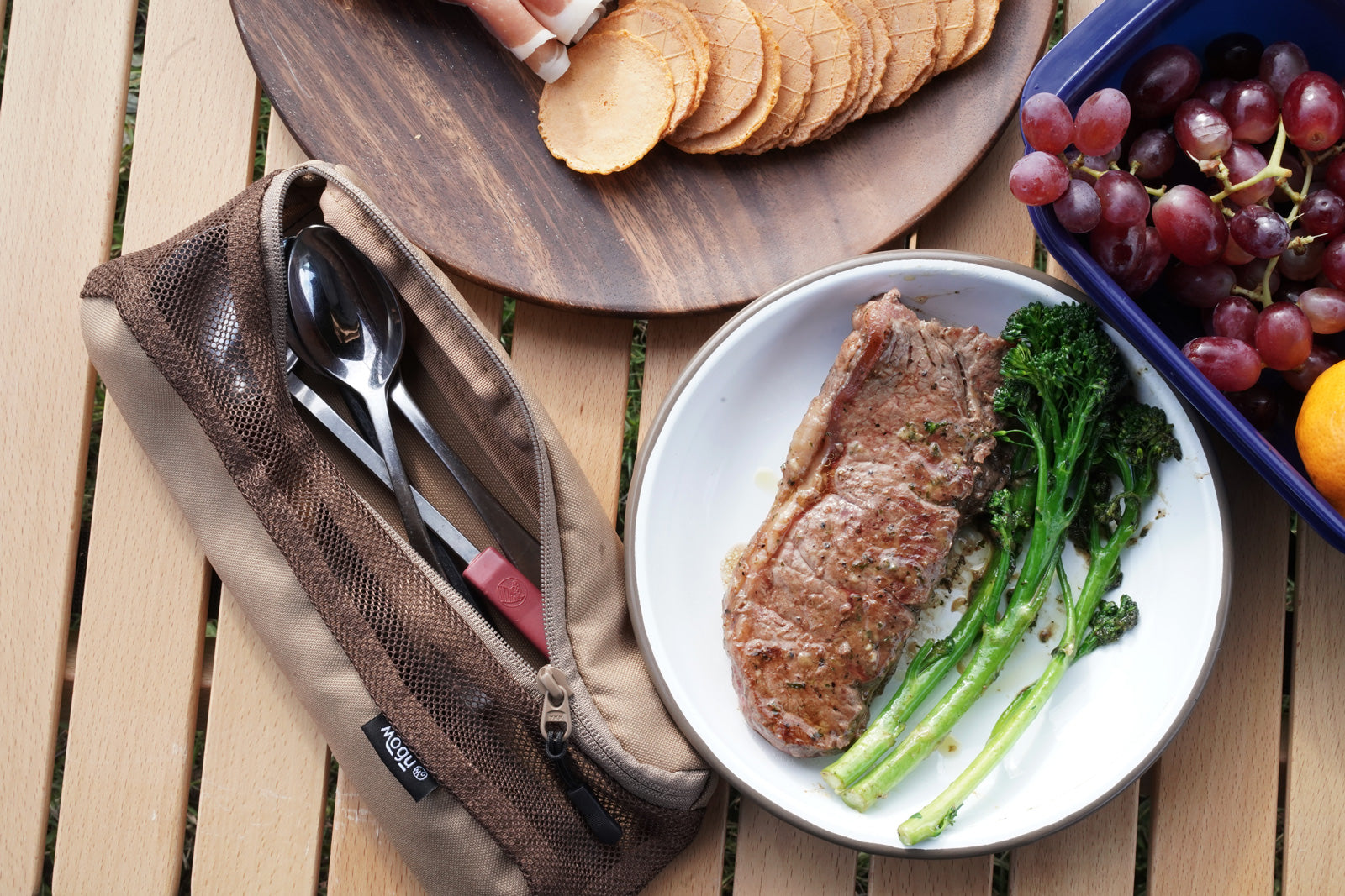 - A detachable zip pouch, ie. to store cutlery for easy access during meals.